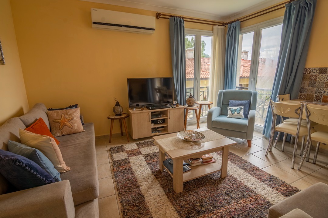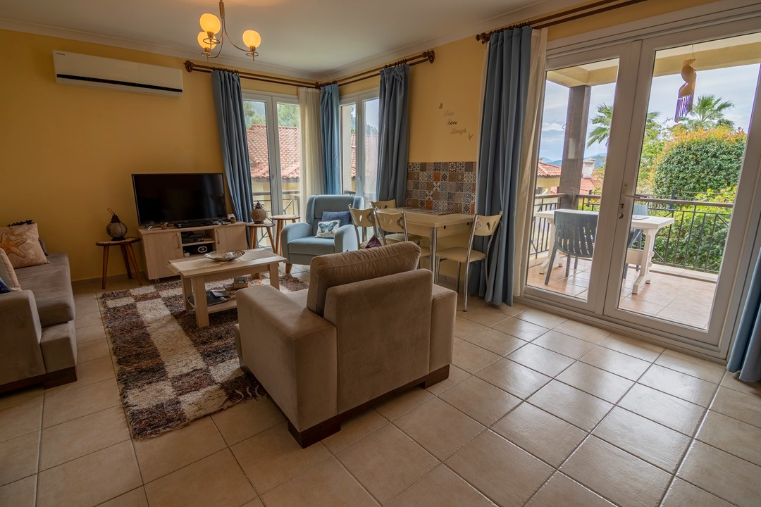 Discover this spacious three-bedroom apartment situated within a secure site complex in Göcek, a renowned natural marina town where the beauty of nature seamlessly blends with the azure waters of the sea. Located just ten minutes from the vibrant town center, this property offers an ideal combination of tranquility and accessibility.